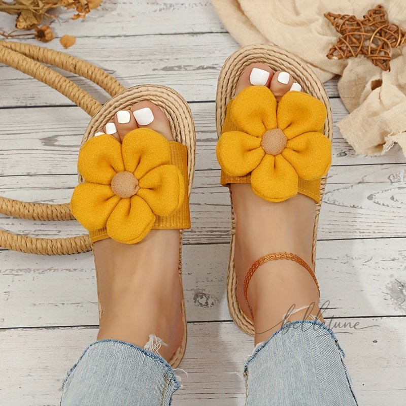 Elegant Summer Breeze Floral Sandals for Women: Comfy Slip-On, Open Toe Strappy Slides with Lightweight Straw Sole